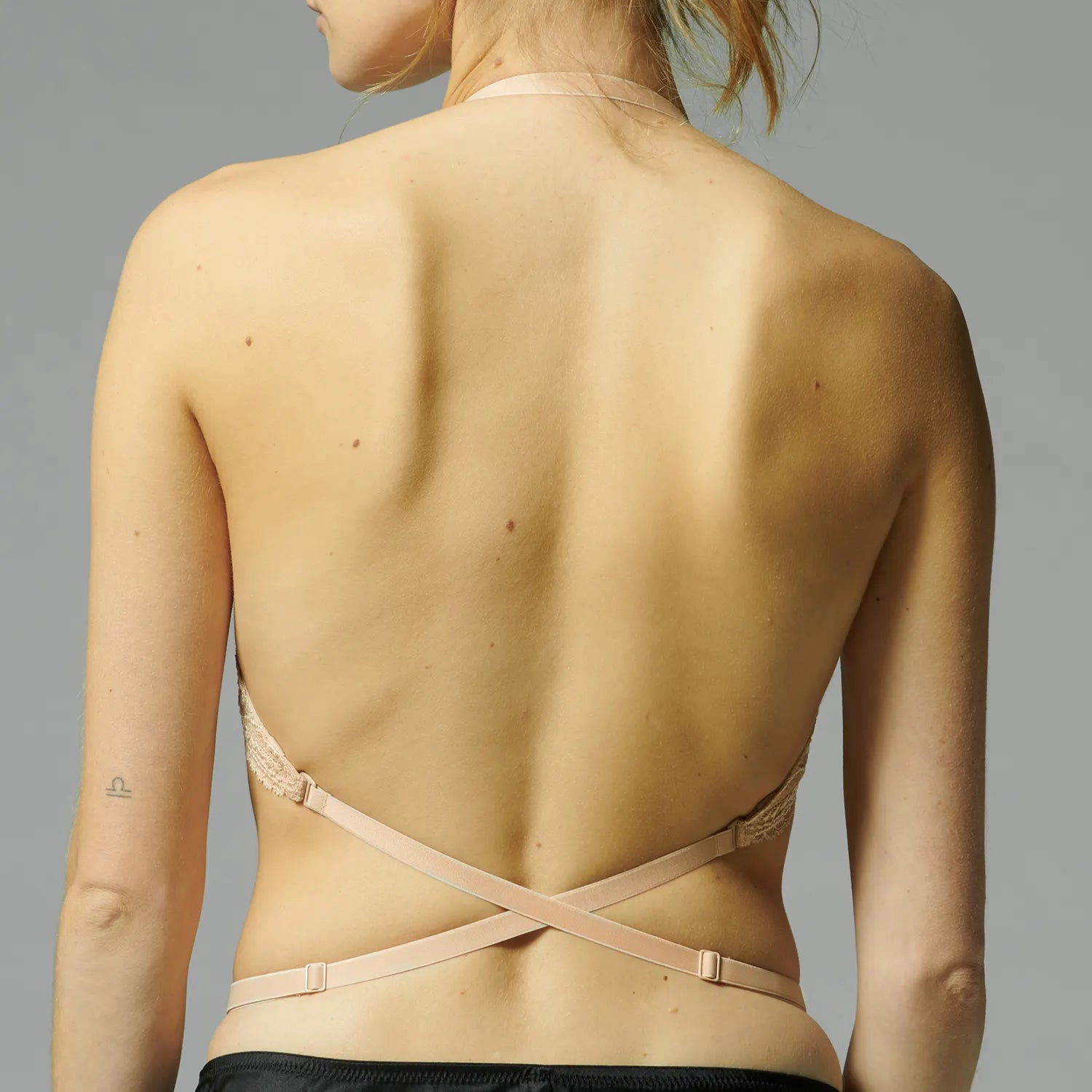 Denne bh er til alle kvinder, der drømmer om at bære en åben ryg, samtidig med at barmen er sikret effektivt og diskret. Gennemsigtige stropper inkluderet.