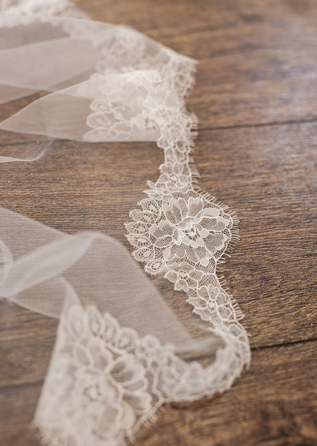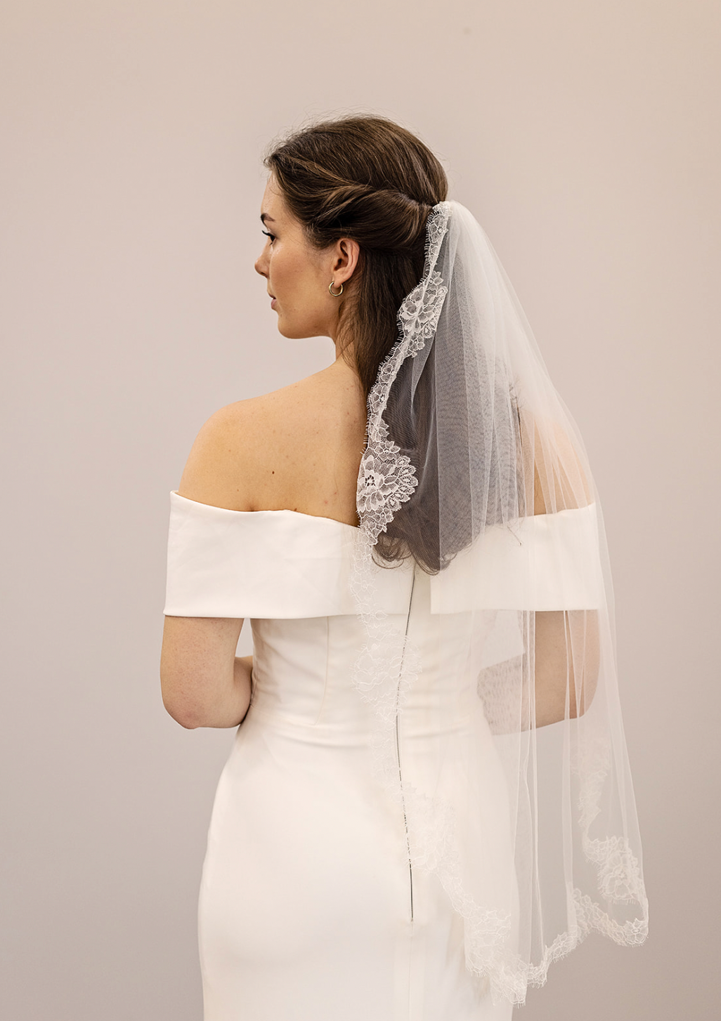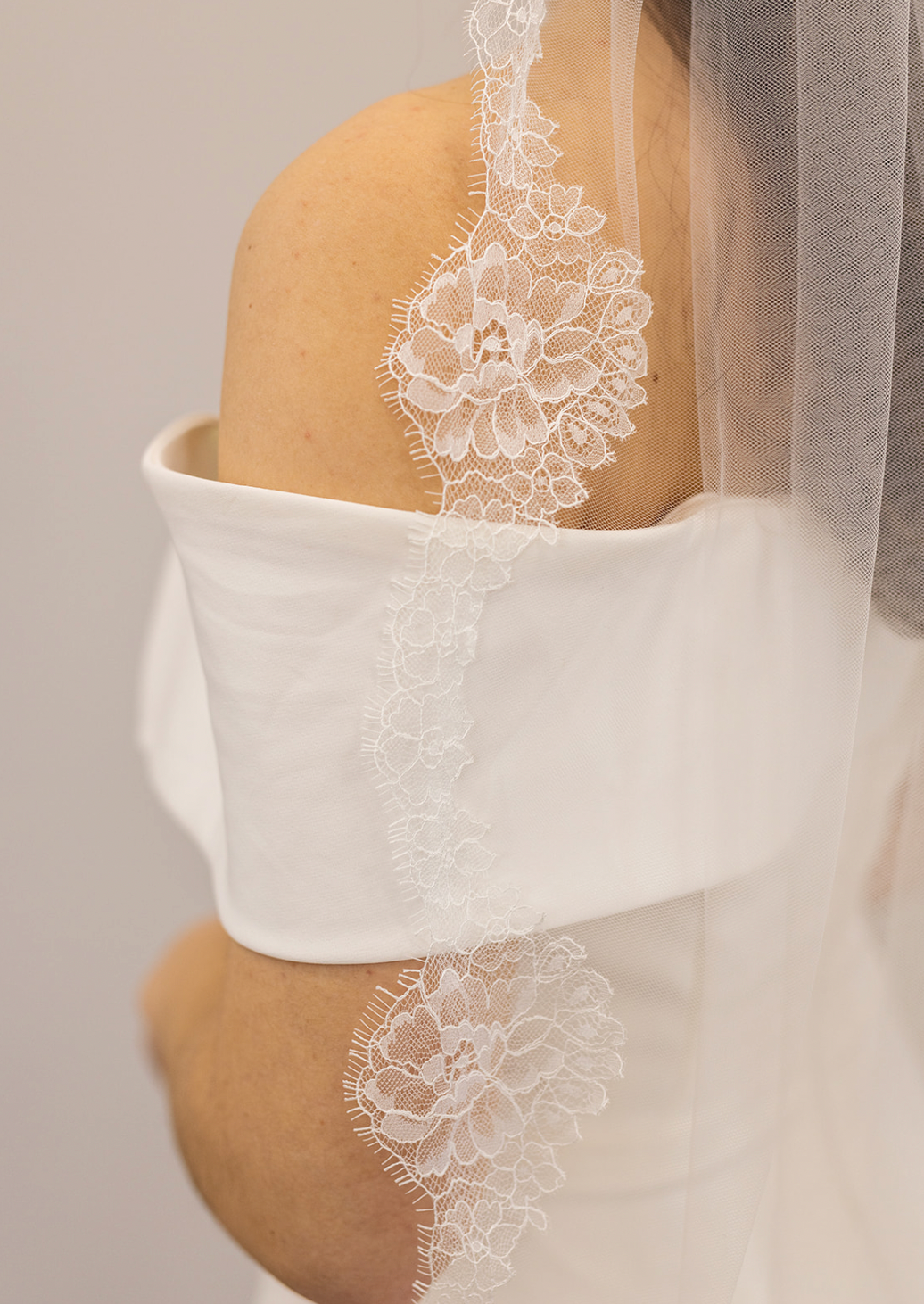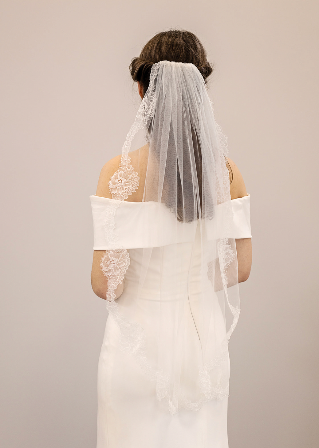 Dette slør på 110 cm har de fineste blondedetaljer og er perfekt til bruden der ønsker et let og delikat slør til bryllupsdagen.