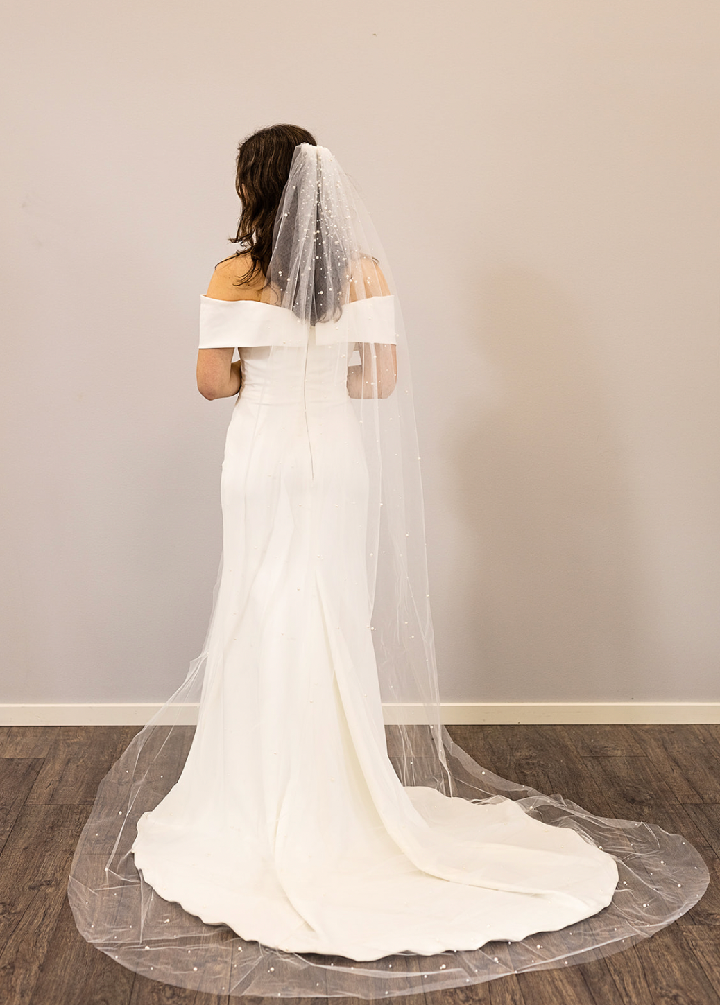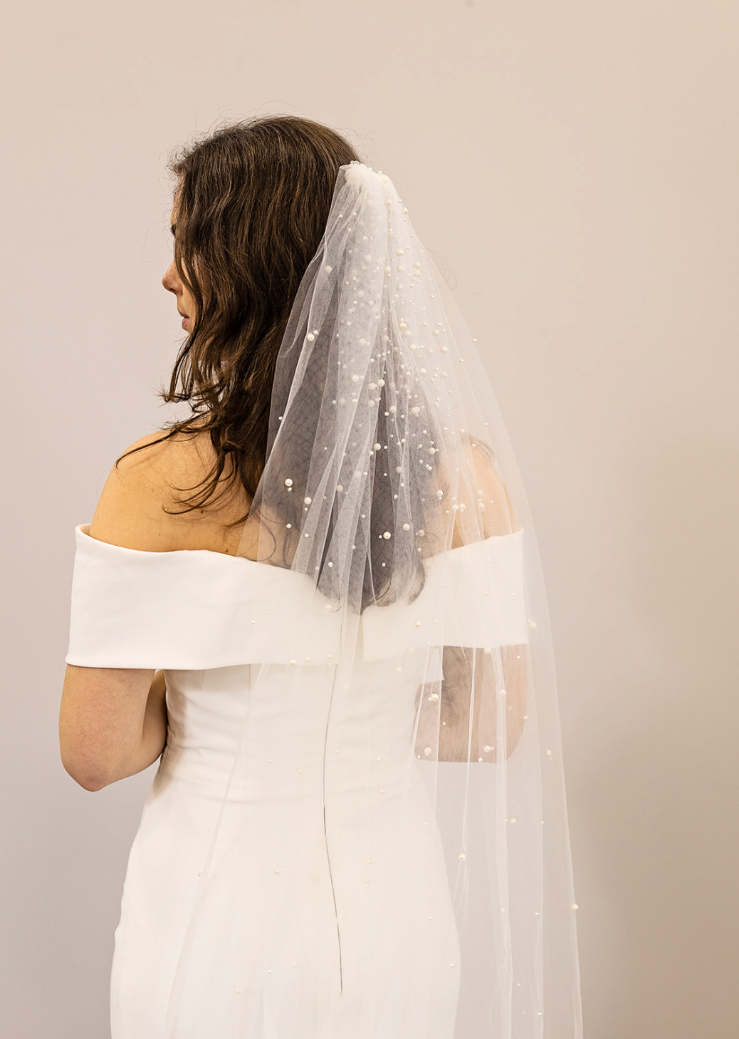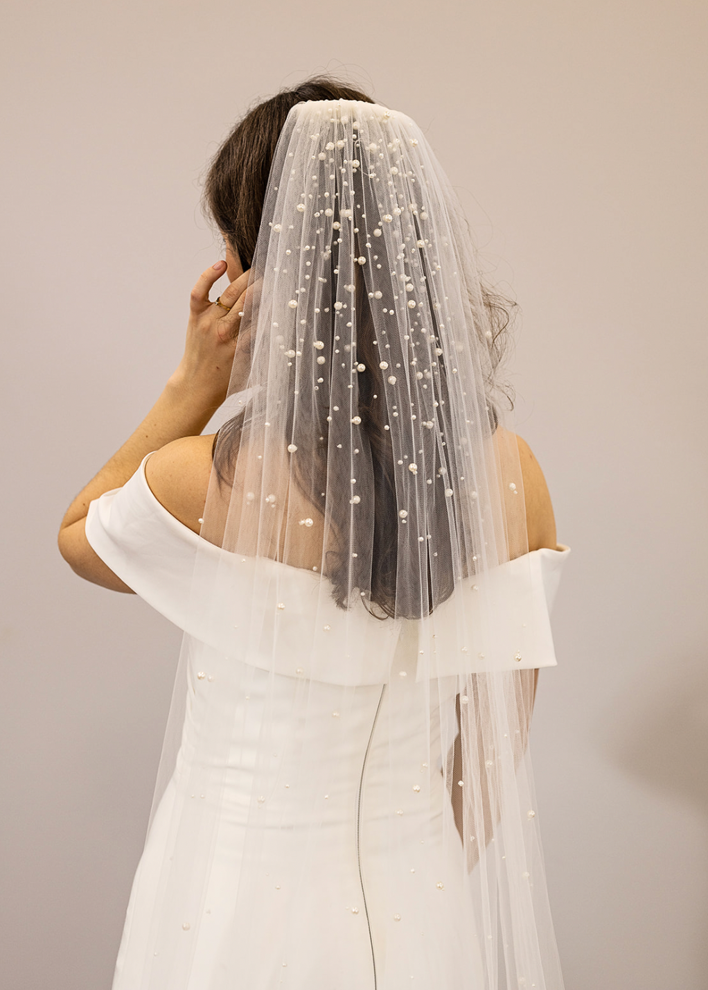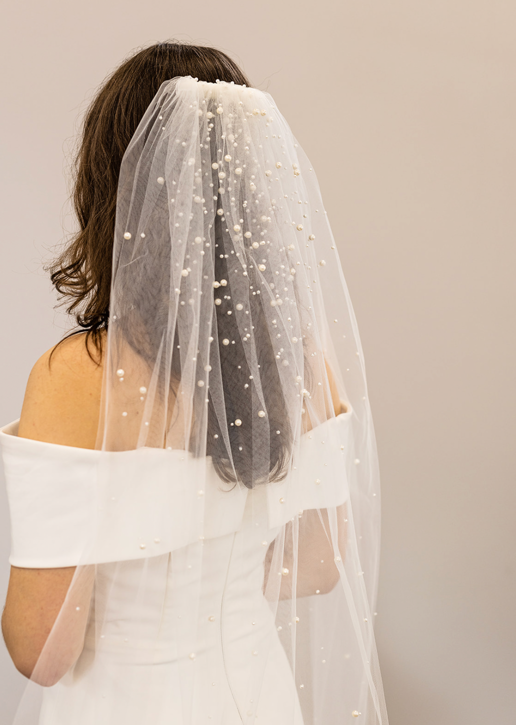 Tilføj et ekstra touch til dit brudelook med dette smukke slør med perledrys