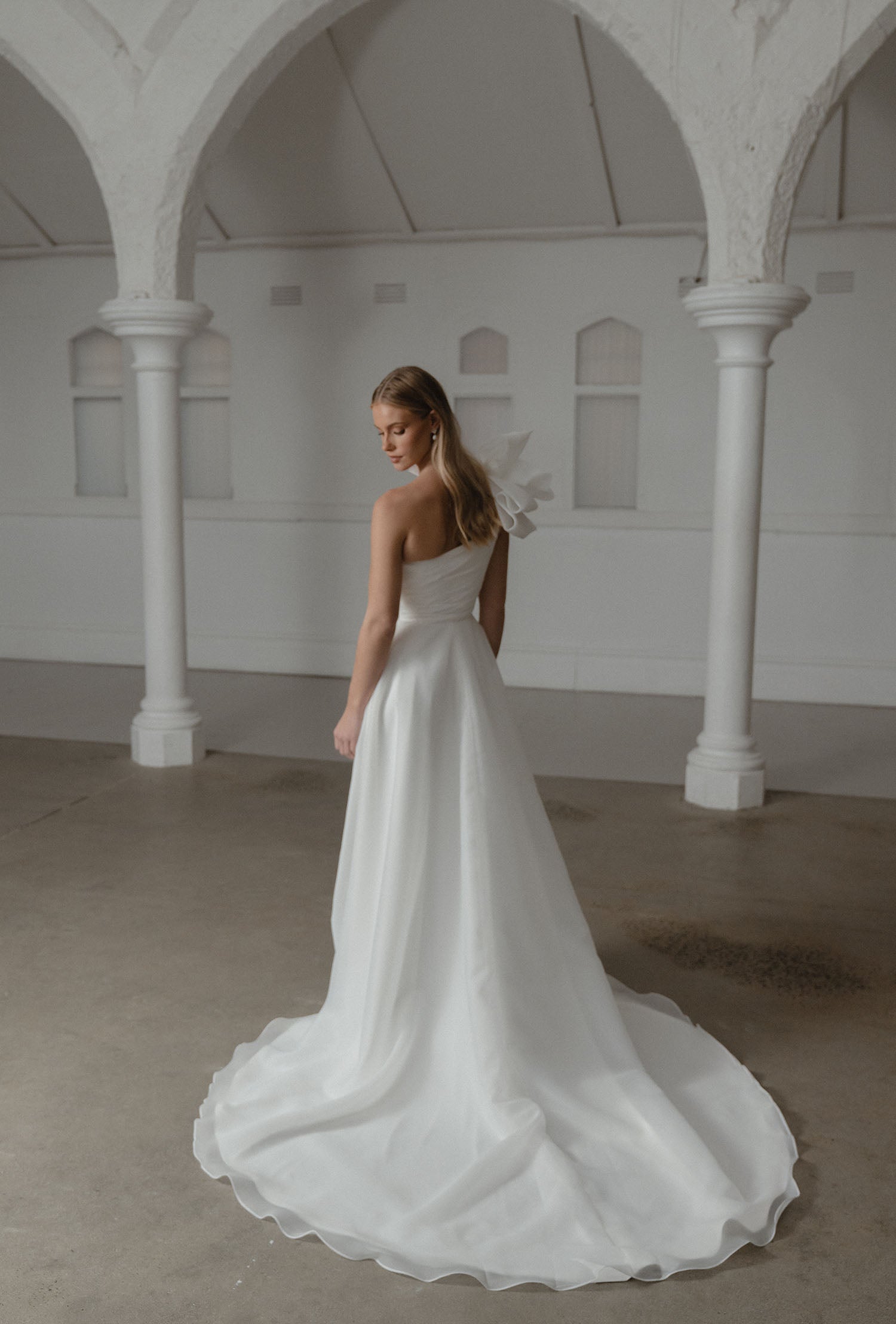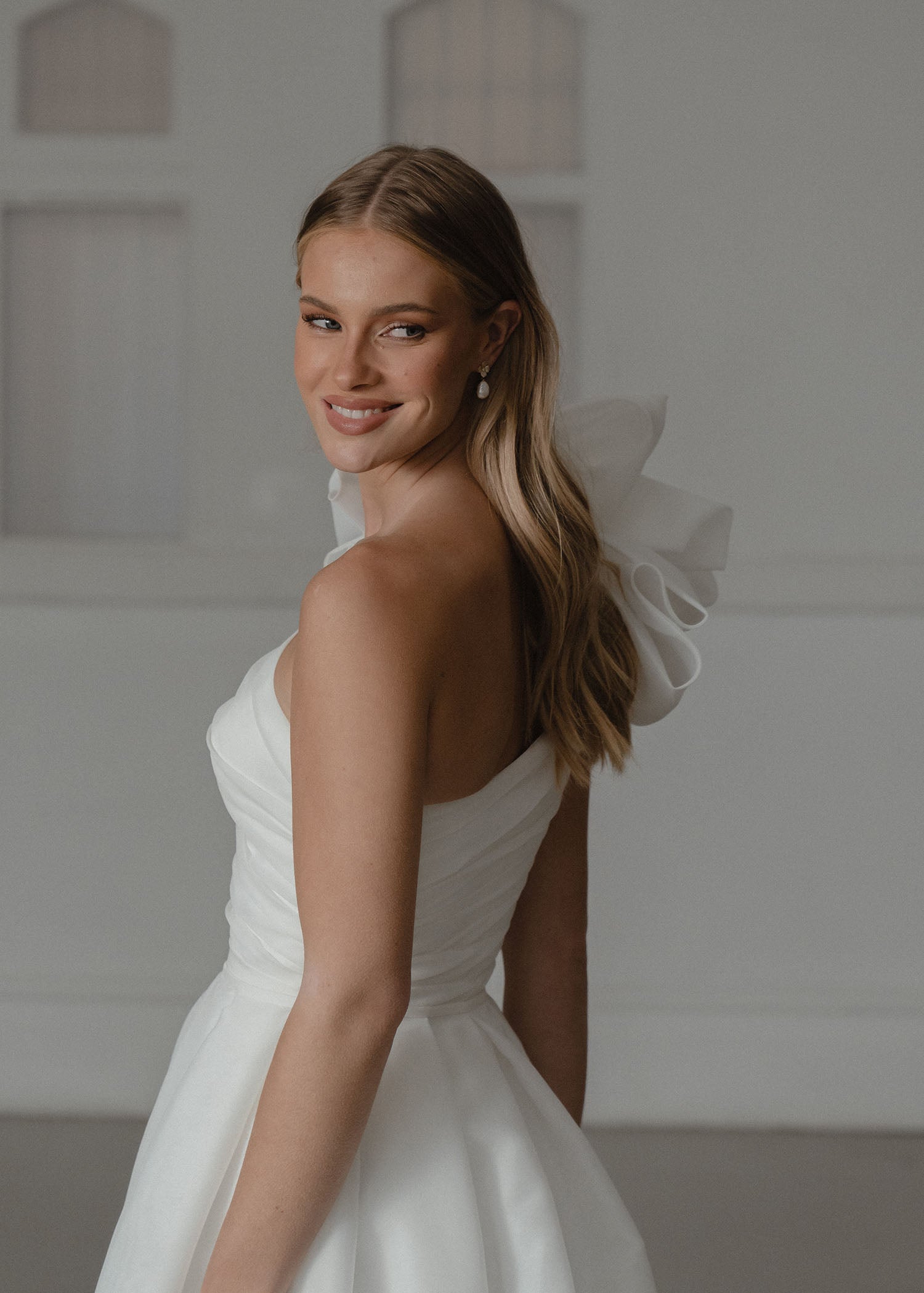 Er du på udkig efter en kjole med masser af wauw faktor.. Så er vores nye Selwyn kjole fra Madi Lane lige noget for dig. Vi elsker det enkelte look med den høje slids og den asymetriske strop med den store sløjfe. Kjolen har derudover et aftageligt skørt. Så du har 2 looks i en kjole.