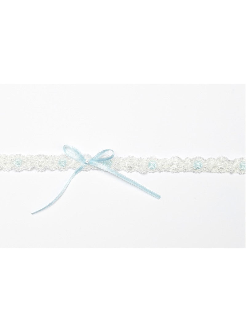 Strømpebånd med blå detaljer samt en blå sløjfe